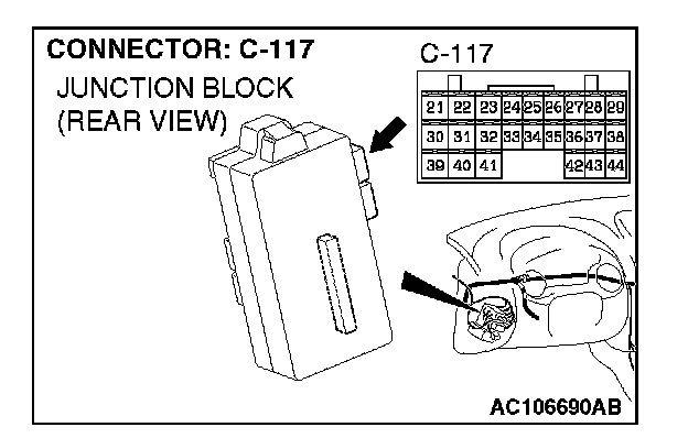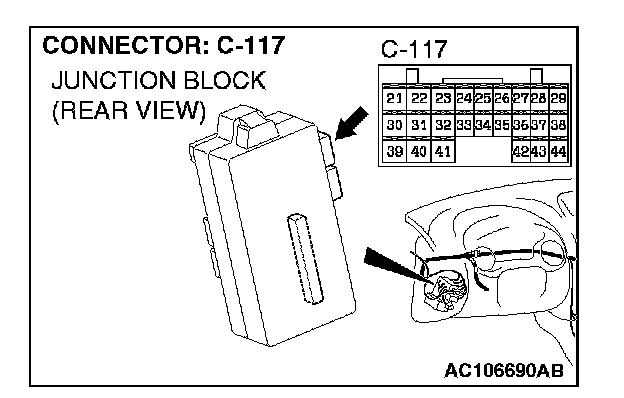 STEP 4. Check ETACS-ECU connectors C-117, C-119 for loose, corroded or damaged terminals, or terminals pushed back in the connector.