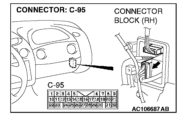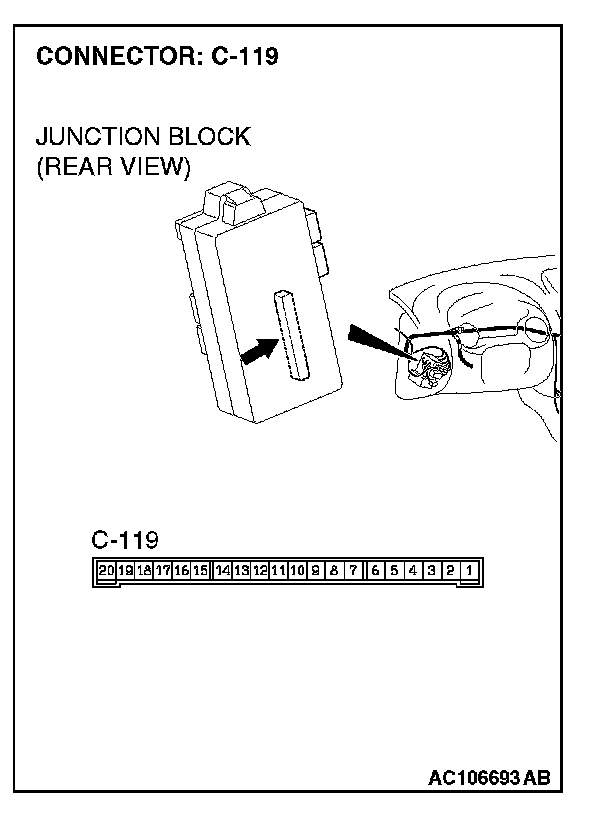 STEP 8. Check ETACS-ECU connector C-119 for loose, corroded or damaged terminals, or terminals pushed back in the connector.