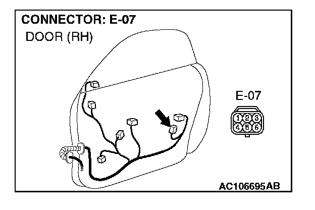 STEP 6. Check passenger's door lock actuator connector E-07 for loose, corroded or damaged terminals, or terminals pushed back in the connector.