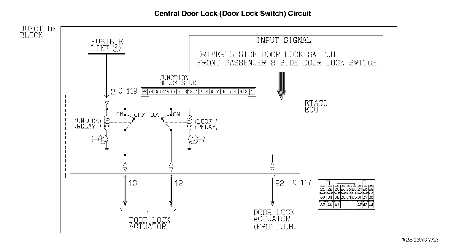Central Door Locking System: All the Doors do not Lock or Unlock with just the Door Lock Switch Operation.Central Door Lock (Door Lock Switch) Circuit:
