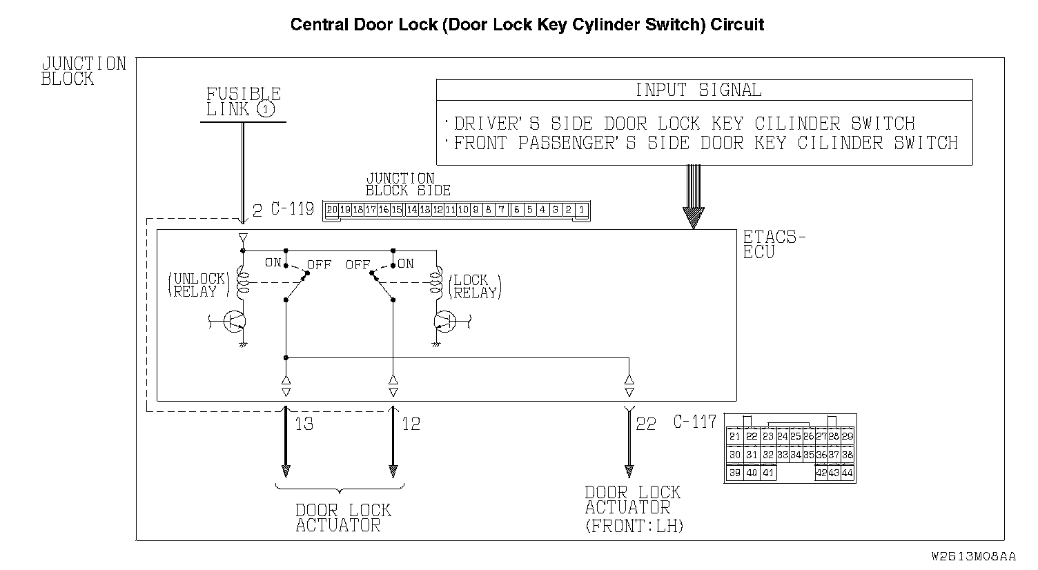 Central Door Locking System: All the Doors do not Lock or Unlock with just the Door Lock Key Cylinder Key Operation.Central Door Lock (Door Lock Key Cylinder Switch) Circuit: