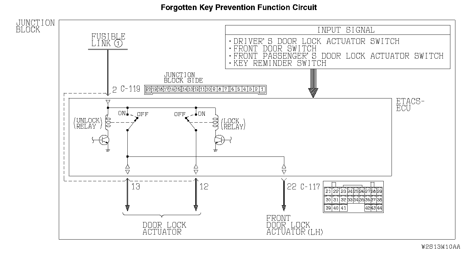 The ETACS-ECU operates the forgotten key prevention function according to the following switches: