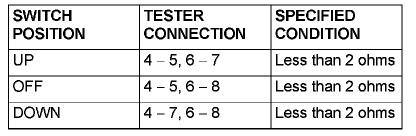 2. Check continuity when the switch on the power window main switch is operated to "UP" or "DOWN" position.