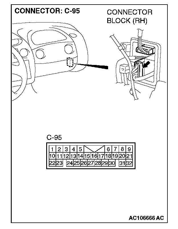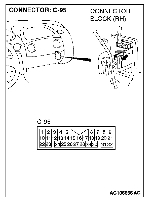 Also check intermediate connectors C-91 and C-95 for loose, corroded, or damaged terminals, or terminals pushed back in the connector. If intermediate connectors C-91 or C-95 is damaged, repair or replace the damaged component(s) as described in Harness Connector Inspection.