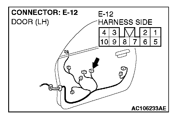 STEP 11. Check the wiring harness between power window main switch connector E-12 (terminal 7) and power window sub-switch connector E-05 (terminal 8).