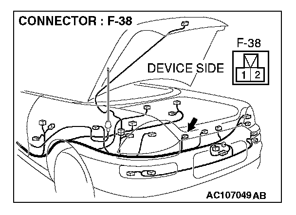 STEP 8. Check trunk lid opener actuator connector F-38 for loose, corroded or damaged terminals, or terminals pushed back in the connector.
