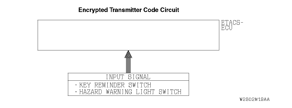 Is the encrypted code register mode can not be set, the input circuits from the switches described in "CIRCUIT OPERATION" or the ETACS-ECU may be defective.