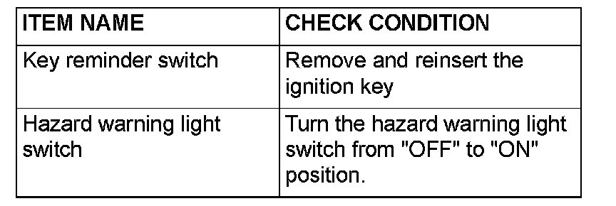 Q: When the key reminder switch and the hazard warning light switch are operated, does scan tool MB991958 sound in each case?