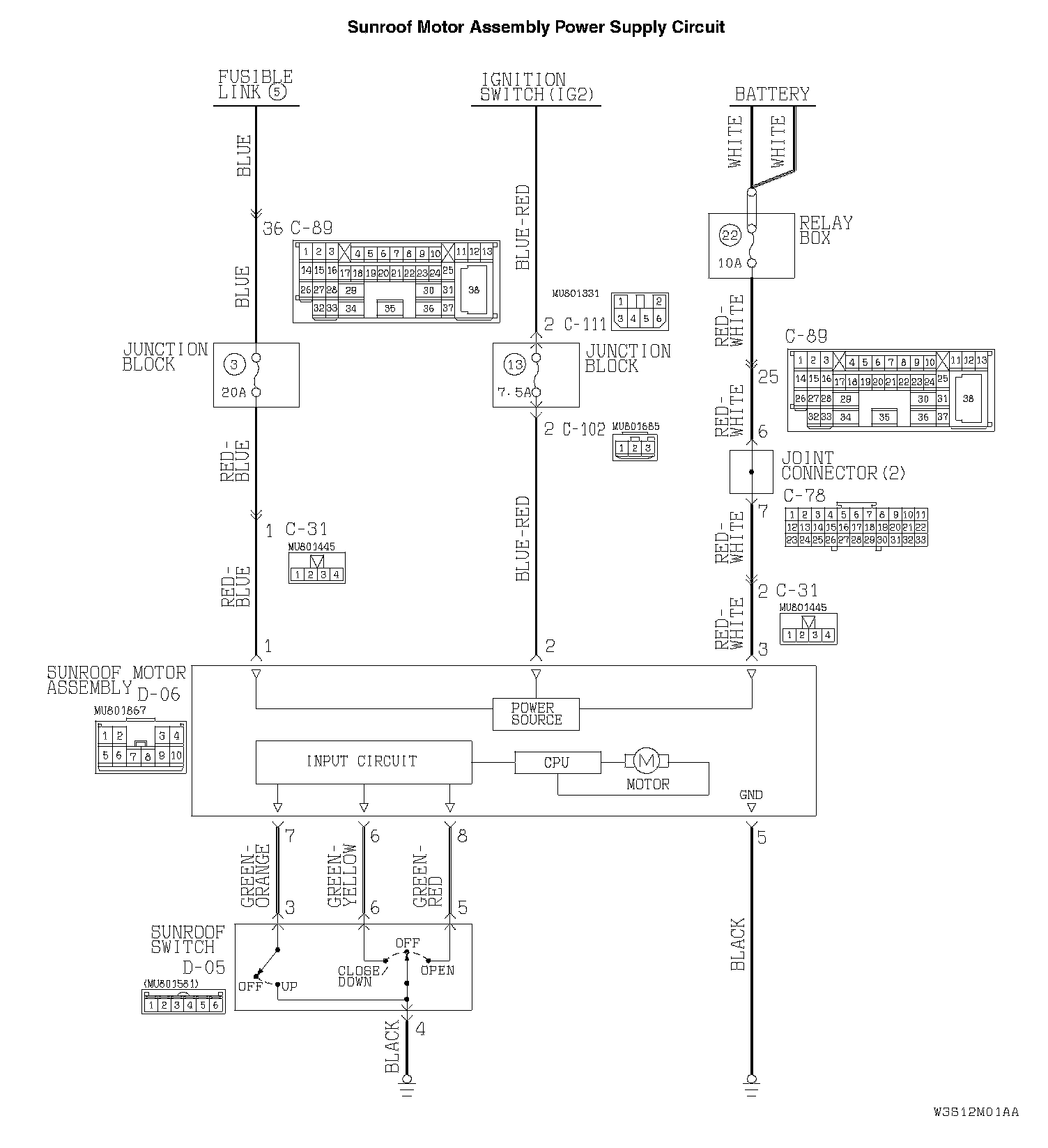 Sunroof Motor Assembly Power Supply Circuit Part 2: