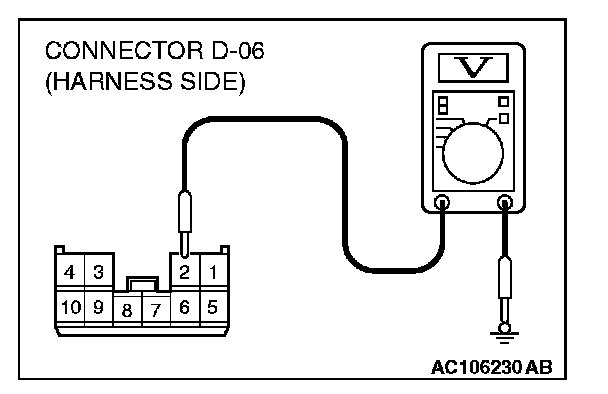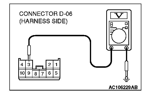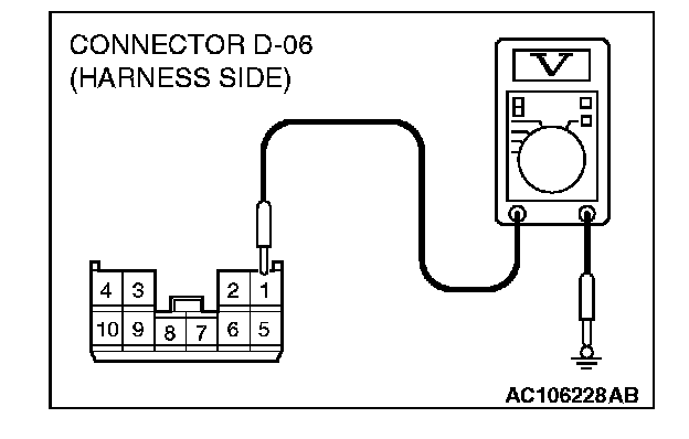 STEP 4. Check the sunroof motor assembly power supply circuit (battery) at the sunroof motor assembly connector D-06 by backprobing.