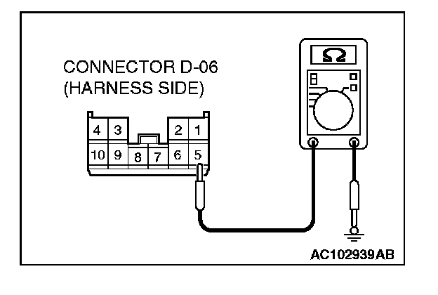 STEP 9. Check the harness wire between sunroof motor assembly connector D-06 (terminal 5) and ground.