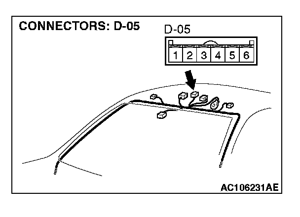 STEP 10. Check the sunroof switch connector D-05 for loose, corroded or damaged terminals, or terminals pushed back in the connector.