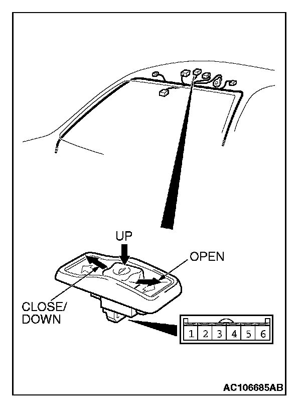 1. Disconnect sunroof switch connector D-06 and measure the resistance available at the wiring component side of the connector.
