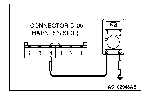 1. Disconnect sunroof switch connector D-05 and measure the resistance available at the wiring component side of the connector.