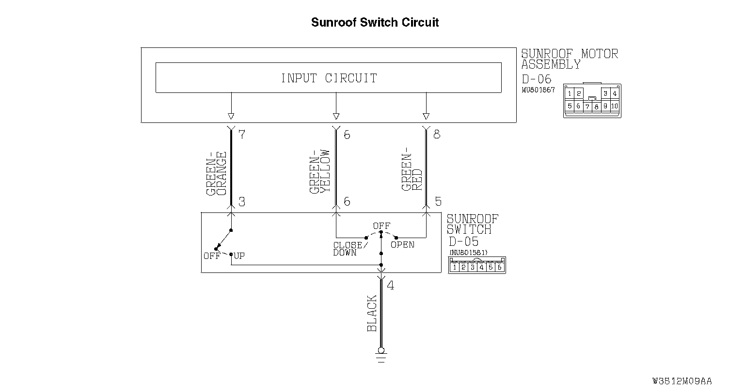 Sunroof: Any of the Sunroof Switch Positions is Defective.Sunroof Switch Circuit: