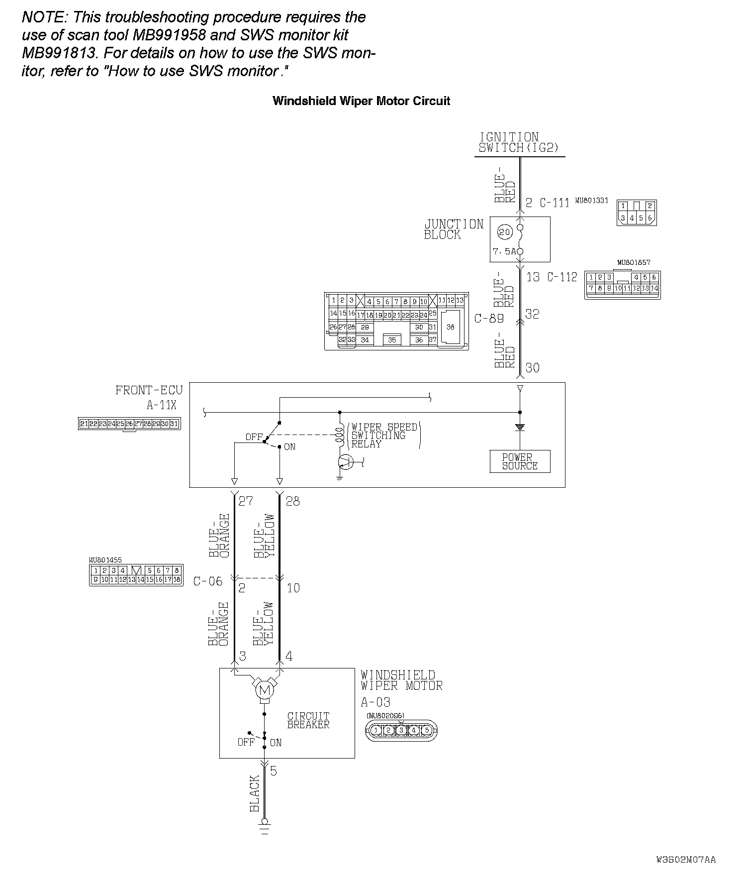 NOTE: This troubleshooting procedure requires the use of scan tool MB991958 and SWS monitor kit MB991813. For details on how to use the SWS monitor, refer to "How to use SWS monitor." How To Use SWS Monitor