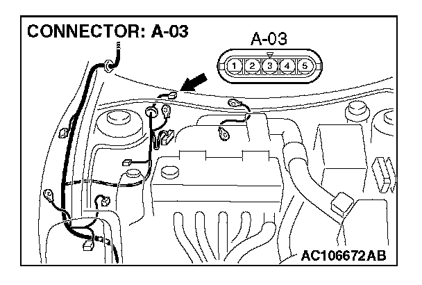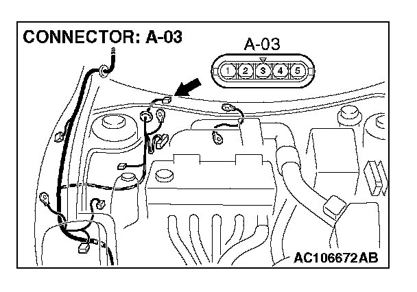 STEP 3. Check windshield wiper motor connector A-03 for loose, corroded or damaged terminals, or terminals pushed back in the connector.