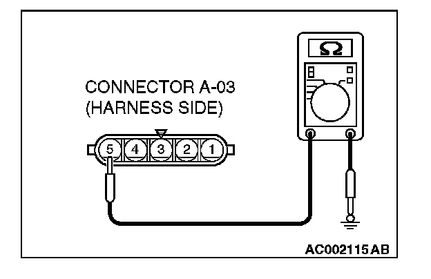 STEP 6. Check the wiring harness between windshield wiper motor connector A-03 (terminal 5) and ground.