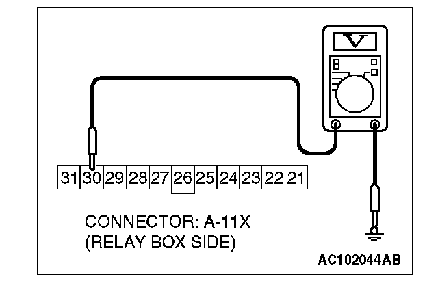 1. Disconnect front-ECU A-11X and measure the voltage available at the relay box side of the connector.