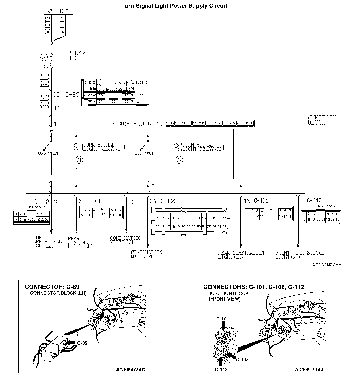 Is the turn-signal lights do not flash normally, the input circuits from the switches described in "CIRCUIT OPERATION" or the ETACS-ECU may be defective. If the hazard warning lights do not flash, the power supply line to the ETACS-ECU (dedicated to the turn-signal lights) may be defective.