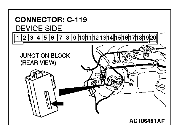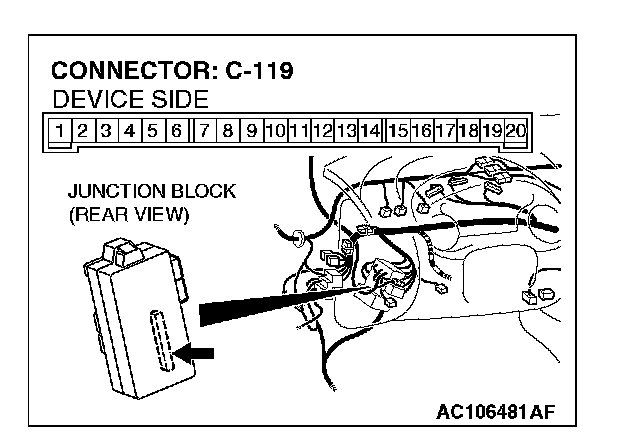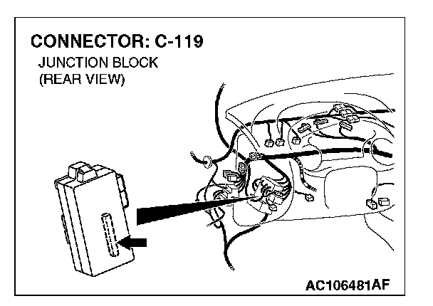 1. Disconnect ETACS-ECU connector C-119 and measure the voltage available at the junction block side of the connector.