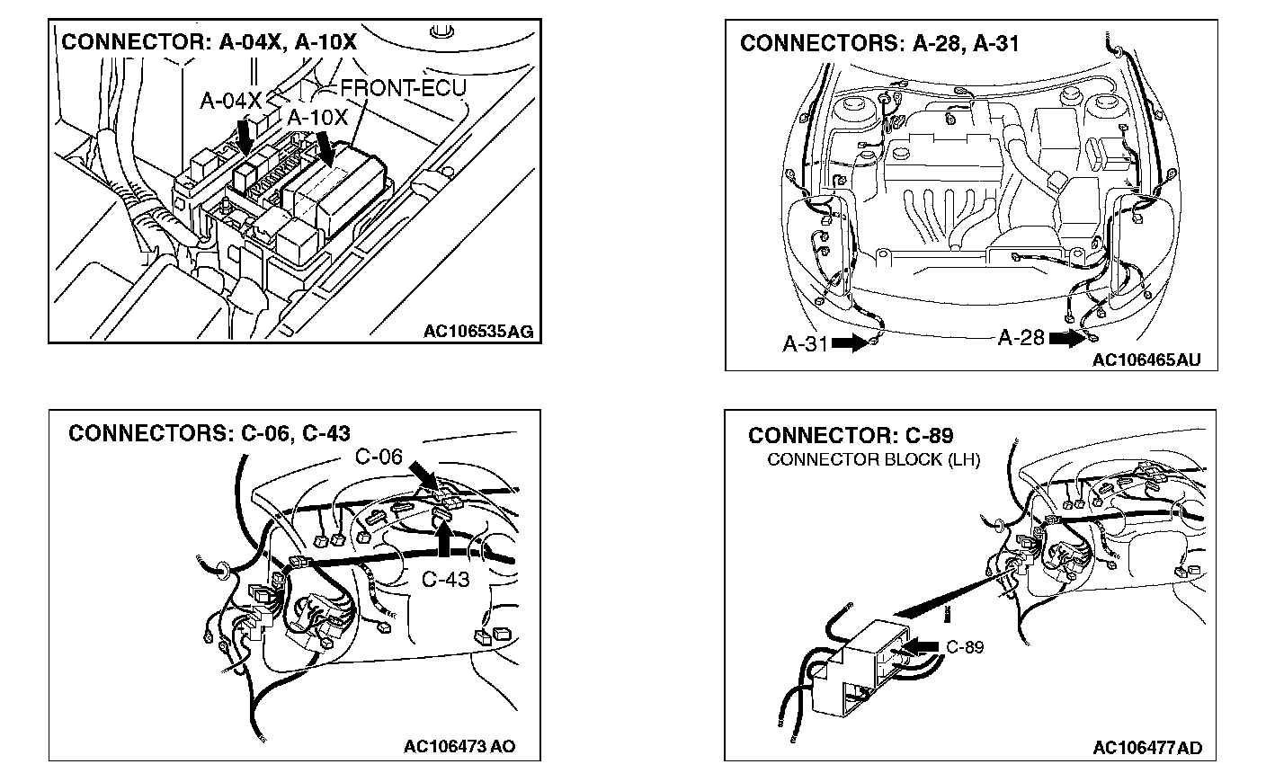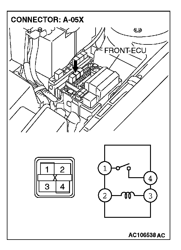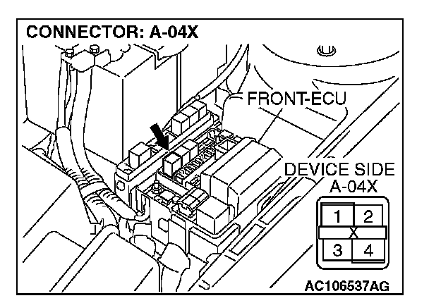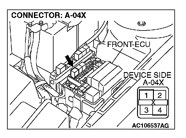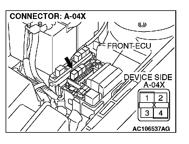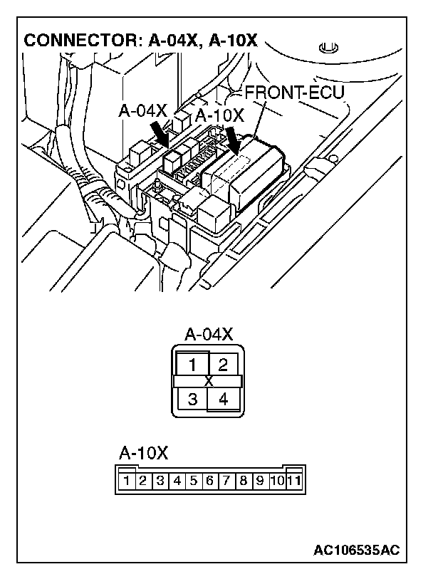 STEP 7. Check front-ECU connector A-10X for loose, corroded or damaged terminals, or terminals pushed back in the connector.