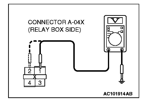 1. Disconnect fog light relay connector A-04X and measure the voltage available at the relay box side of the connector.
