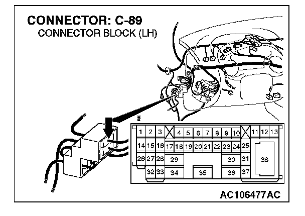 NOTE: Also check intermediate connectors A-06 and C-89 for loose, corroded, or damaged terminals, or terminals pushed back in the connector. If intermediate connectors A-06 or C-89 are damaged, repair or replace the damaged component(s) as described in Harness Connector Inspection.