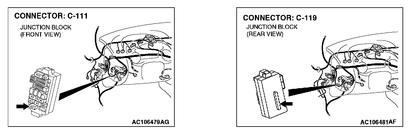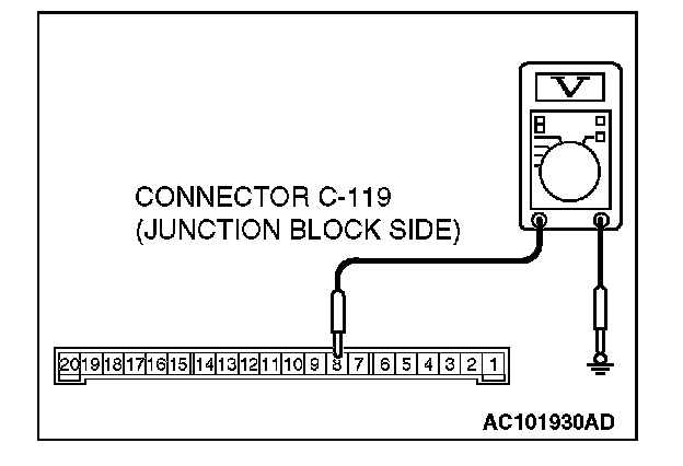 1. Disconnect ETACS-ECU connector C-119 and measure the voltage available at the junction block side of the connector.