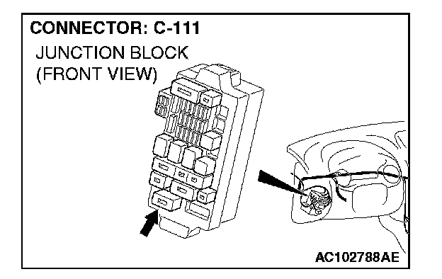 NOTE: Also check junction block connector C-111 for loose, corroded, or damaged terminals, or terminals pushed back in the connector. If junction block connector C-111 is damaged, Repair or replace the damaged component(s) as described in Harness Connector Inspection.