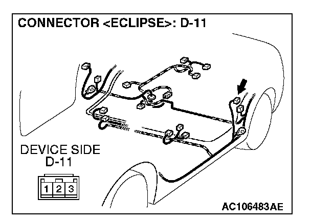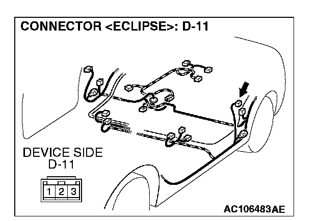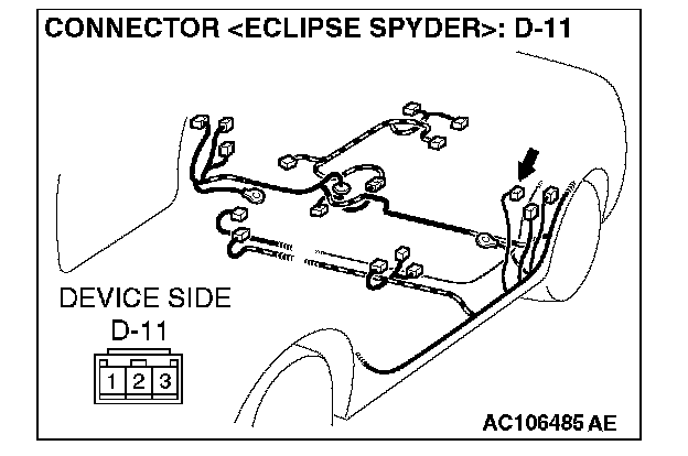 STEP 2. Check driver's door switch connector D-11 for loose, corroded or damaged terminals, or terminals pushed back in the connector.