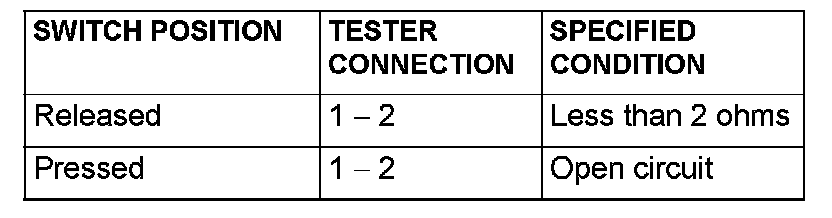 Remove the passenger's door switch. Then check the continuity between the switch terminal and the switch body.