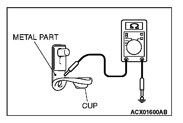 NOTE: Check that the passenger's door switch is grounded to the vehicle body by means of its mounting screw.Remove the cap, and measure the resistance value between the lower metal part and the ground.
