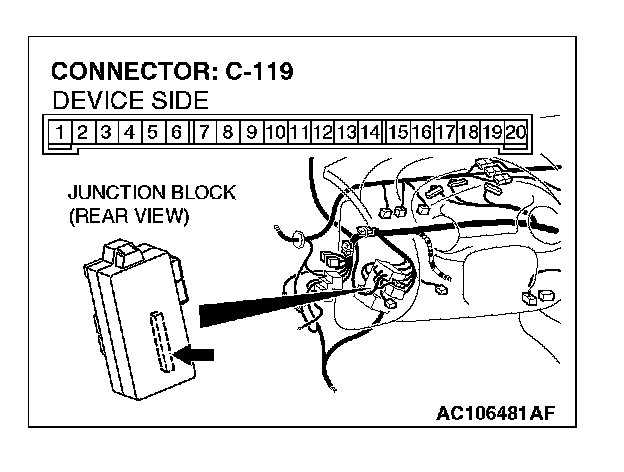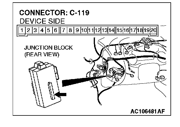 STEP 5. Check ETACS-ECU connector C-119 for loose, corroded or damaged terminals, or terminals pushed back in the connector.