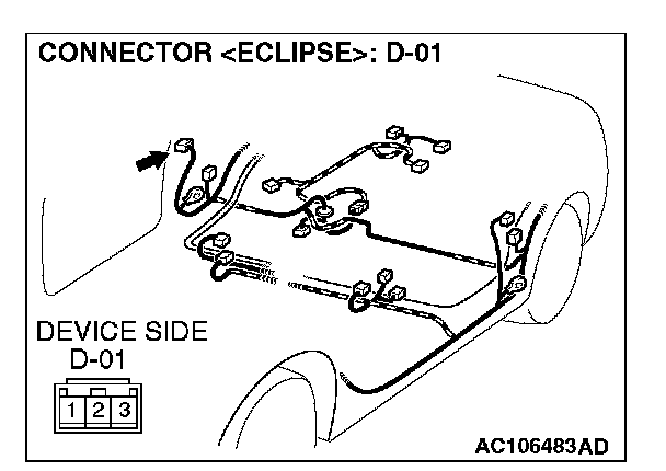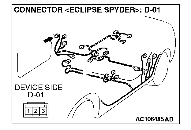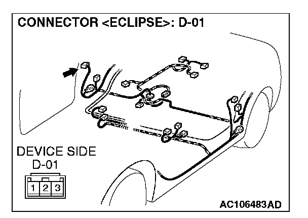 STEP 7. Check passenger's door switch connector D-01 for loose, corroded or damaged terminals, or terminals pushed back in the connector.