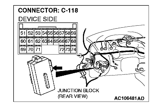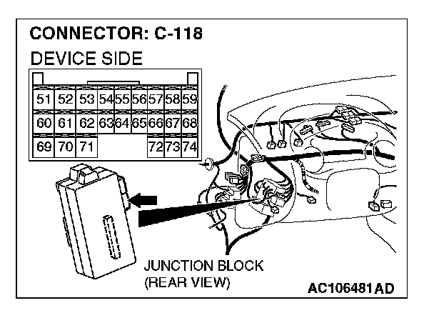 STEP 10. Check ETACS-ECU connector C-118 for loose, corroded or damaged terminals, or terminals pushed back in the connector.