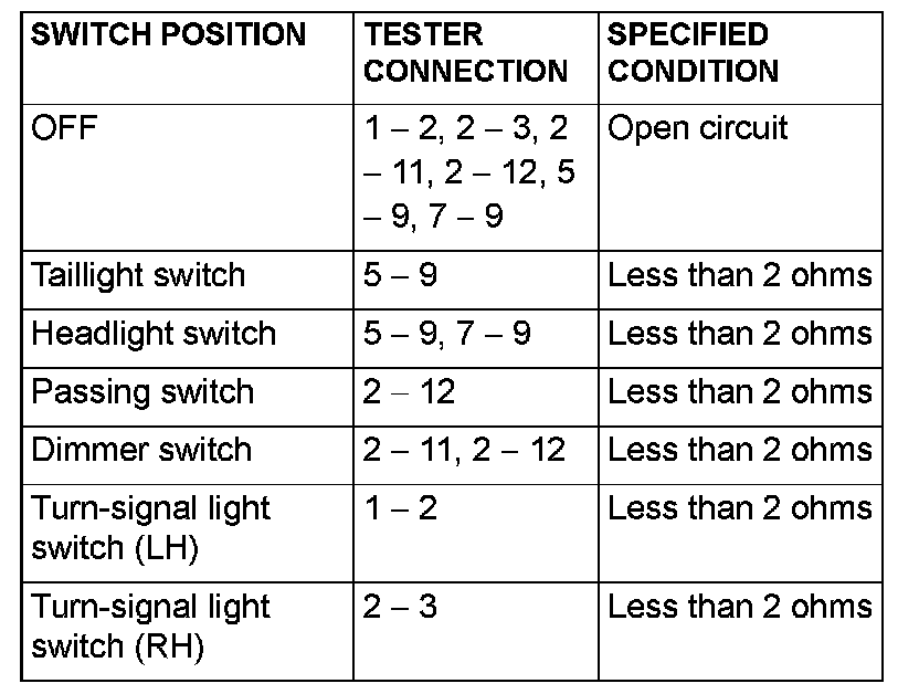 Remove the turn-signal light and the lighting switch.Then check continuity between the switch terminals.