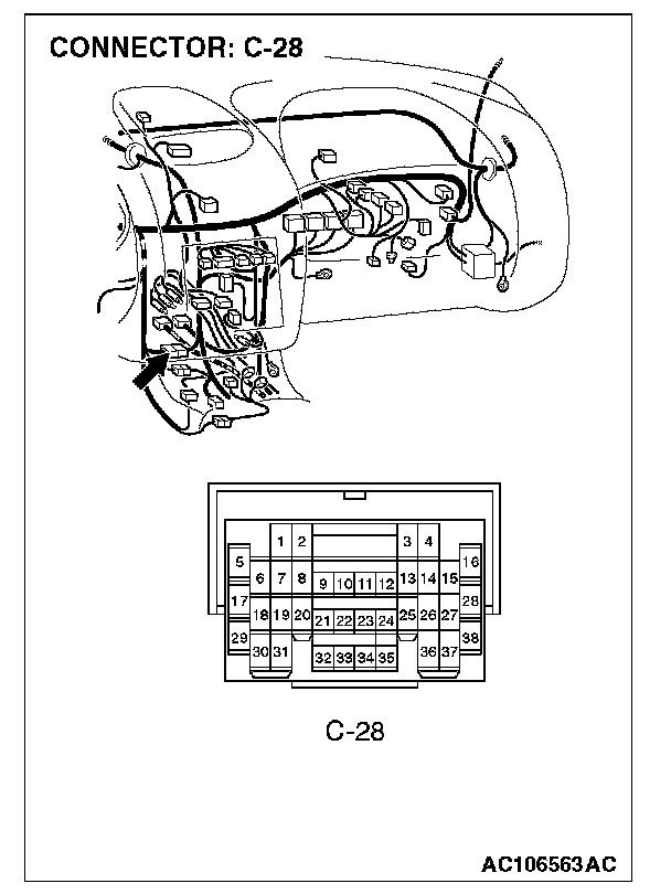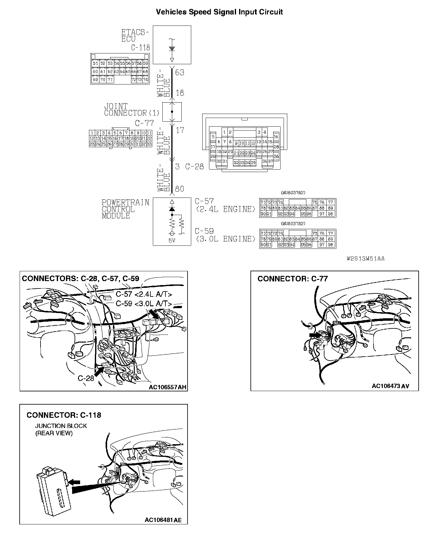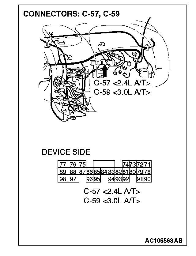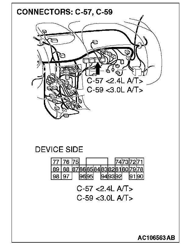 Q: Are ETACS-ECU connector C-118 and powertrain control module connector C-57 <2.4 L ENGINE> or C-59 <3.0 L ENGINE> in good condition?