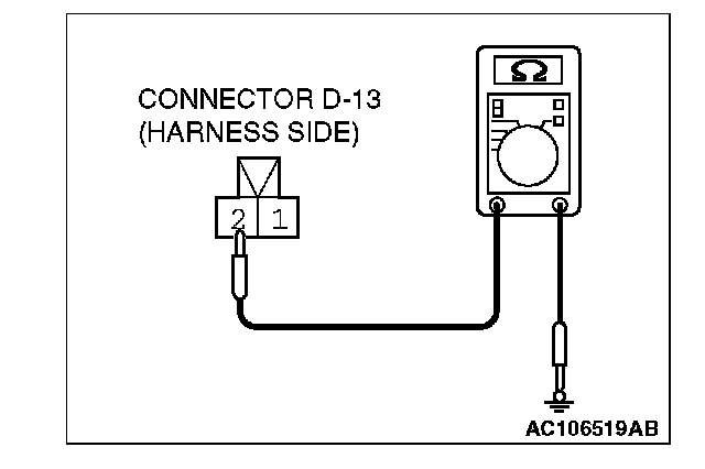 STEP 4. Check the wiring harness between driver's seat belt switch connector D-13 (terminal 2) and ground.