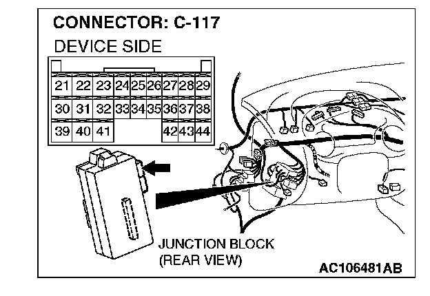 STEP 5. Check ETACS-ECU connector C-117 for loose, corroded or damaged terminals, or terminals pushed back in the connector.