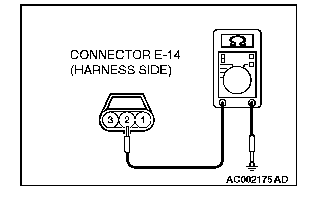 STEP 4. Check the ground circuit to the driver's door lock key cylinder switch. Measure the resistance at driver's door lock key cylinder switch connector E-14.