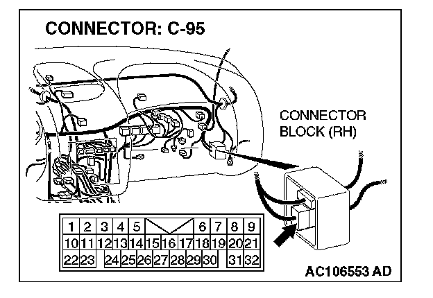 NOTE: Also check intermediate connector C-95 for loose, corroded, or damaged terminals, or terminals pushed back in the connector. If intermediate connector C-95 is damaged, repair or replace the damaged component(s) as described in Harness Connector Inspection.