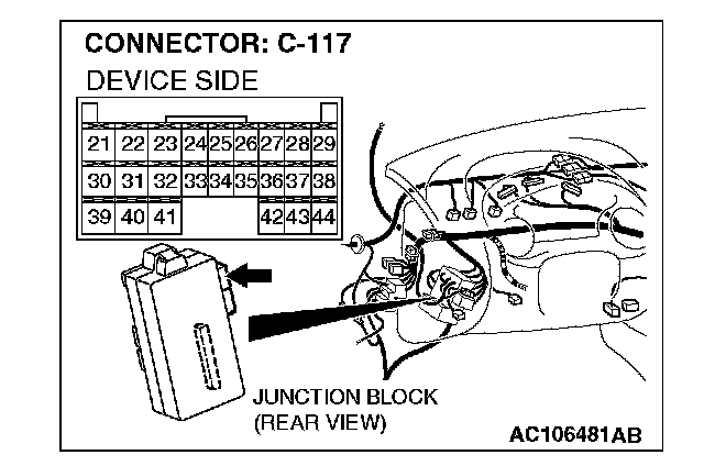 STEP 12. Check ETACS-ECU connector C-117 for damage.