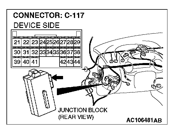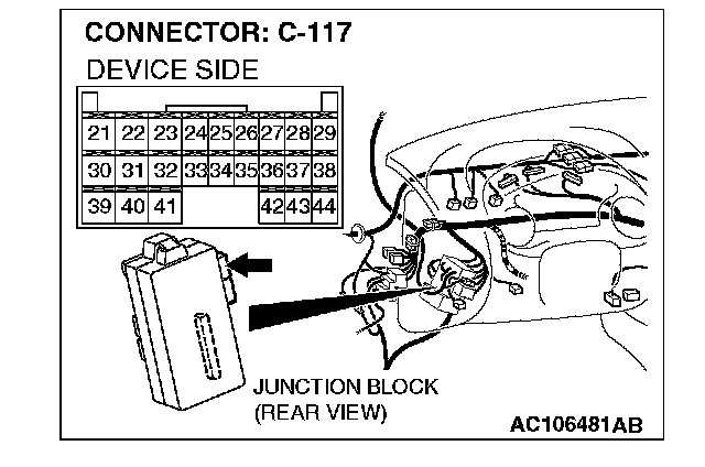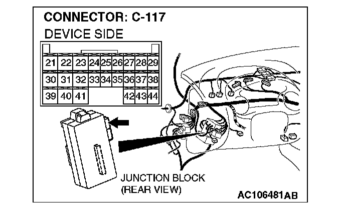 STEP 12. Check ETACS-ECU connector C-117 for loose, corroded or damaged terminals, or terminals pushed back in the connector.