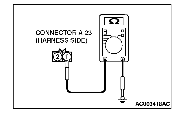 STEP 3. Check the ground circuit to the hood switch. Measure the resistance at hood switch connector A-23.