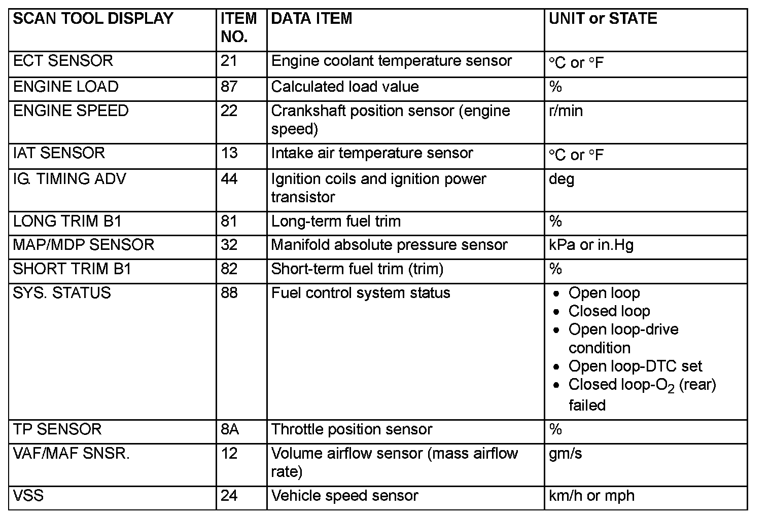 NOTE: As for diagnostic trouble code P1603, "freeze frame" data is not memorized.