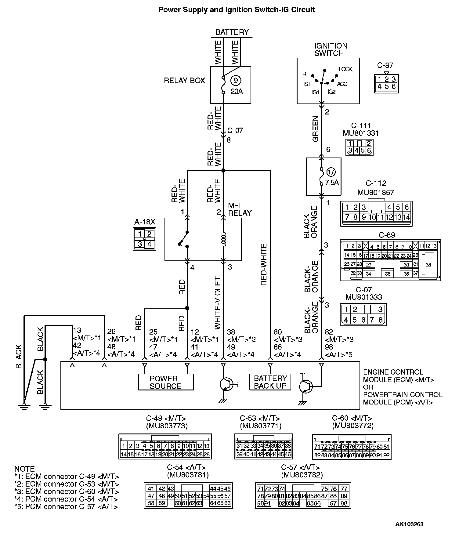 - The ECM (terminal No. 13, No. 26)