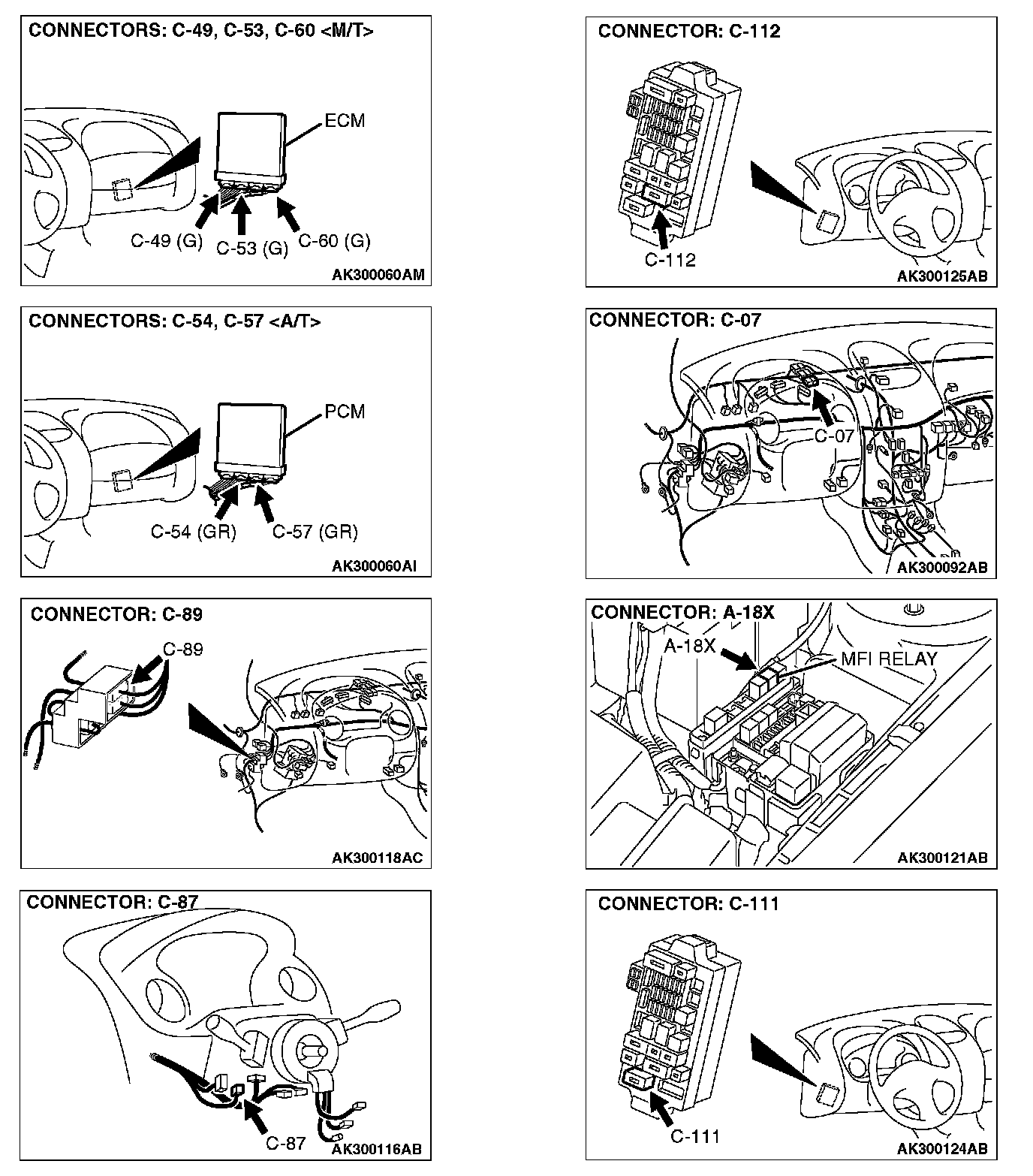 STEP 1. Check connector A-18X at MFI relay for damage.