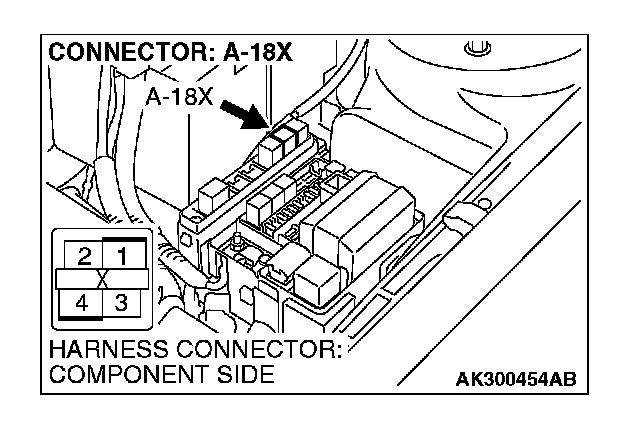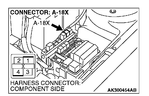 STEP 3. Measure the power supply voltage at MFI relay harness side connector A-18X.