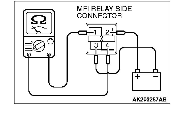 - Battery positive voltage is applied to the MFI relay (terminals No. 3, No. 4).